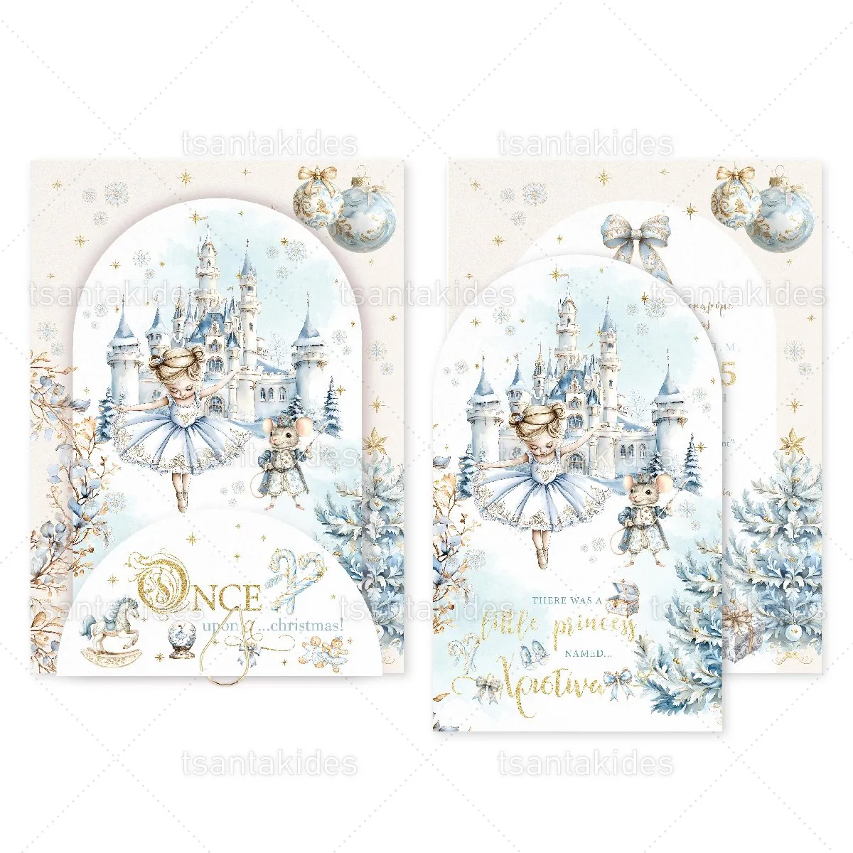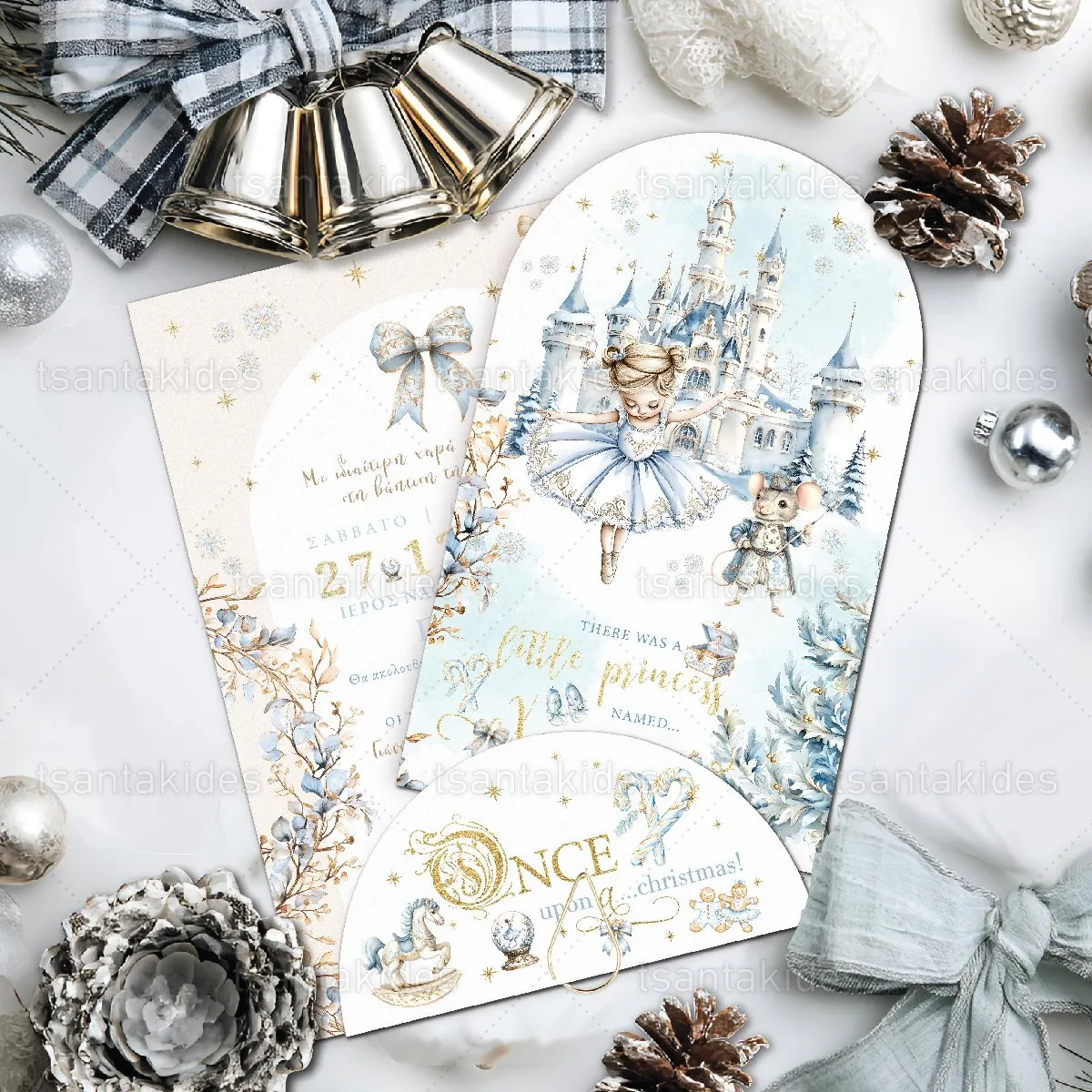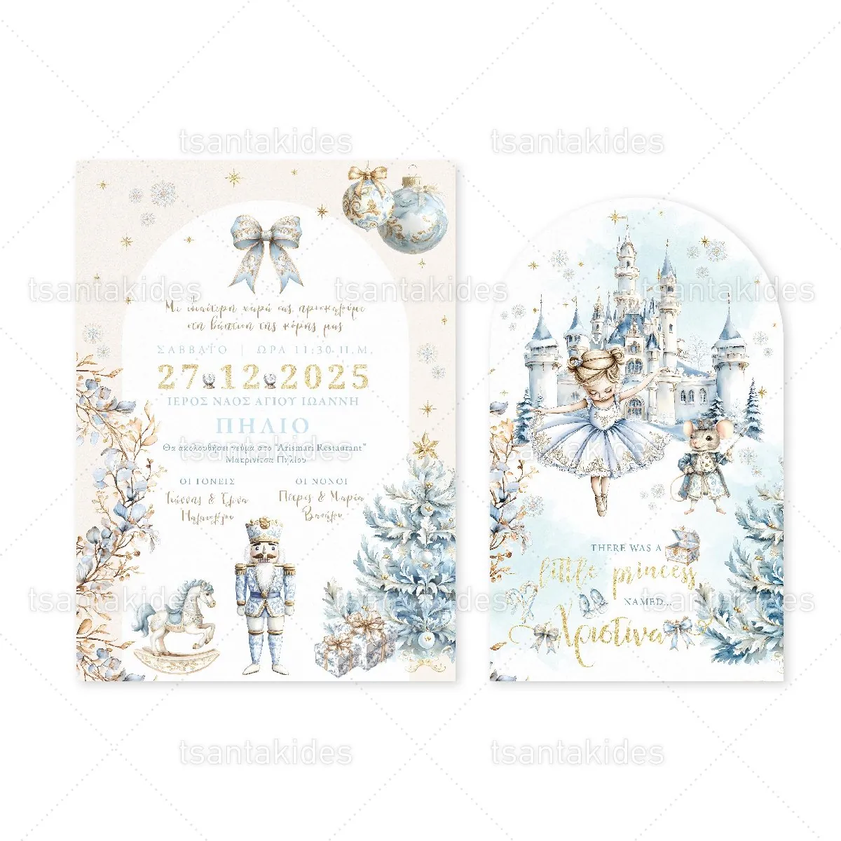 Προσκλητήριο βάπτισης για κορίτσι εκτυπωμένο με θέμα Christmas Ballerina.