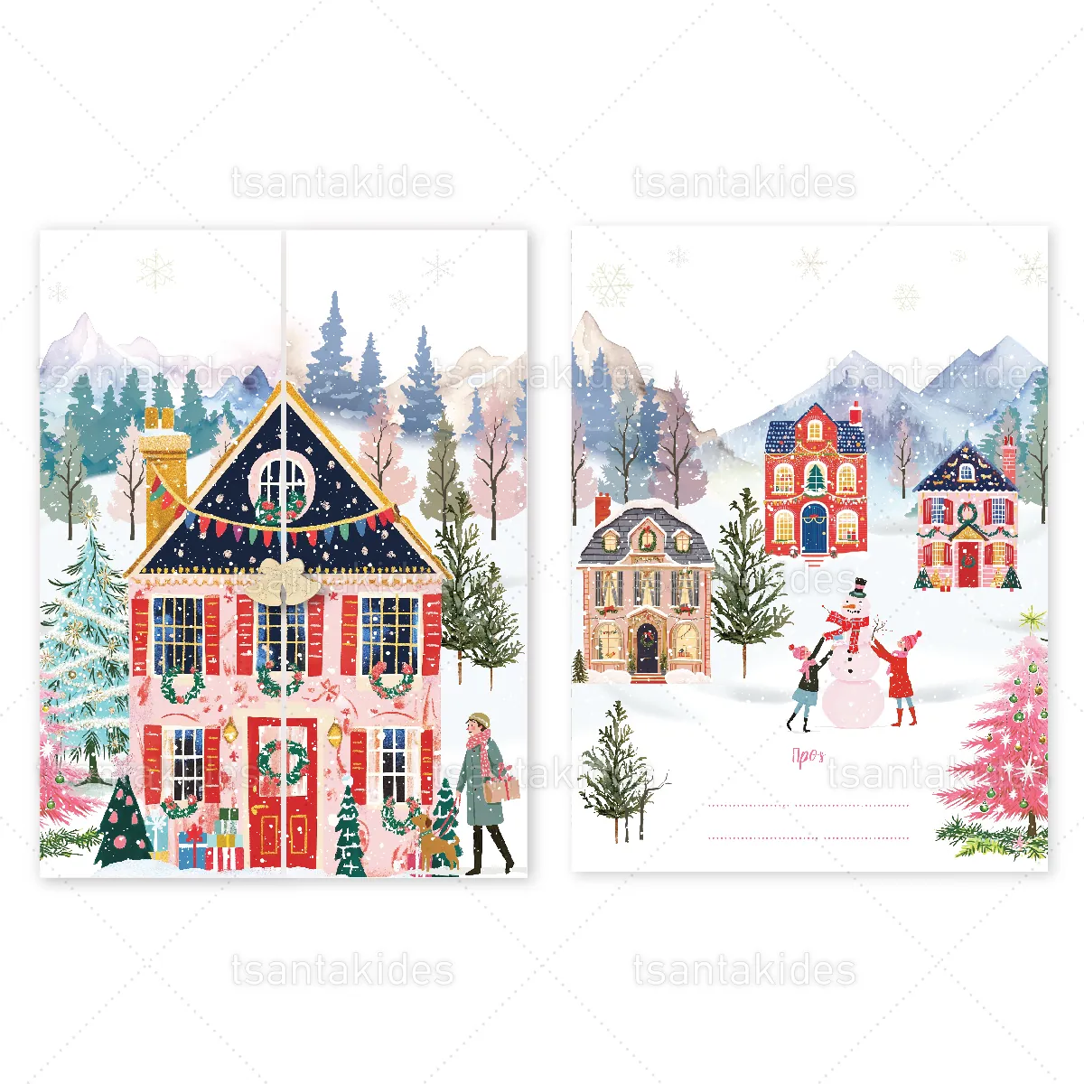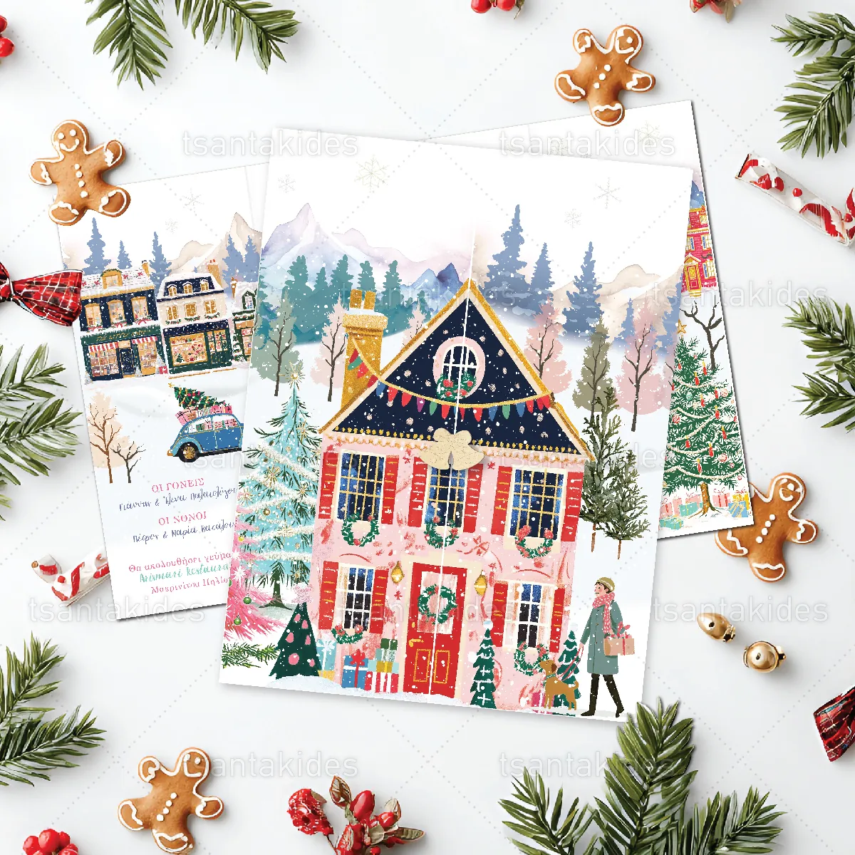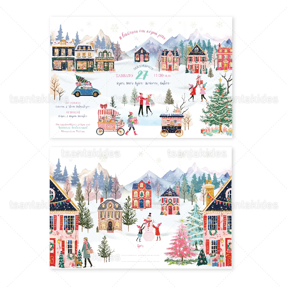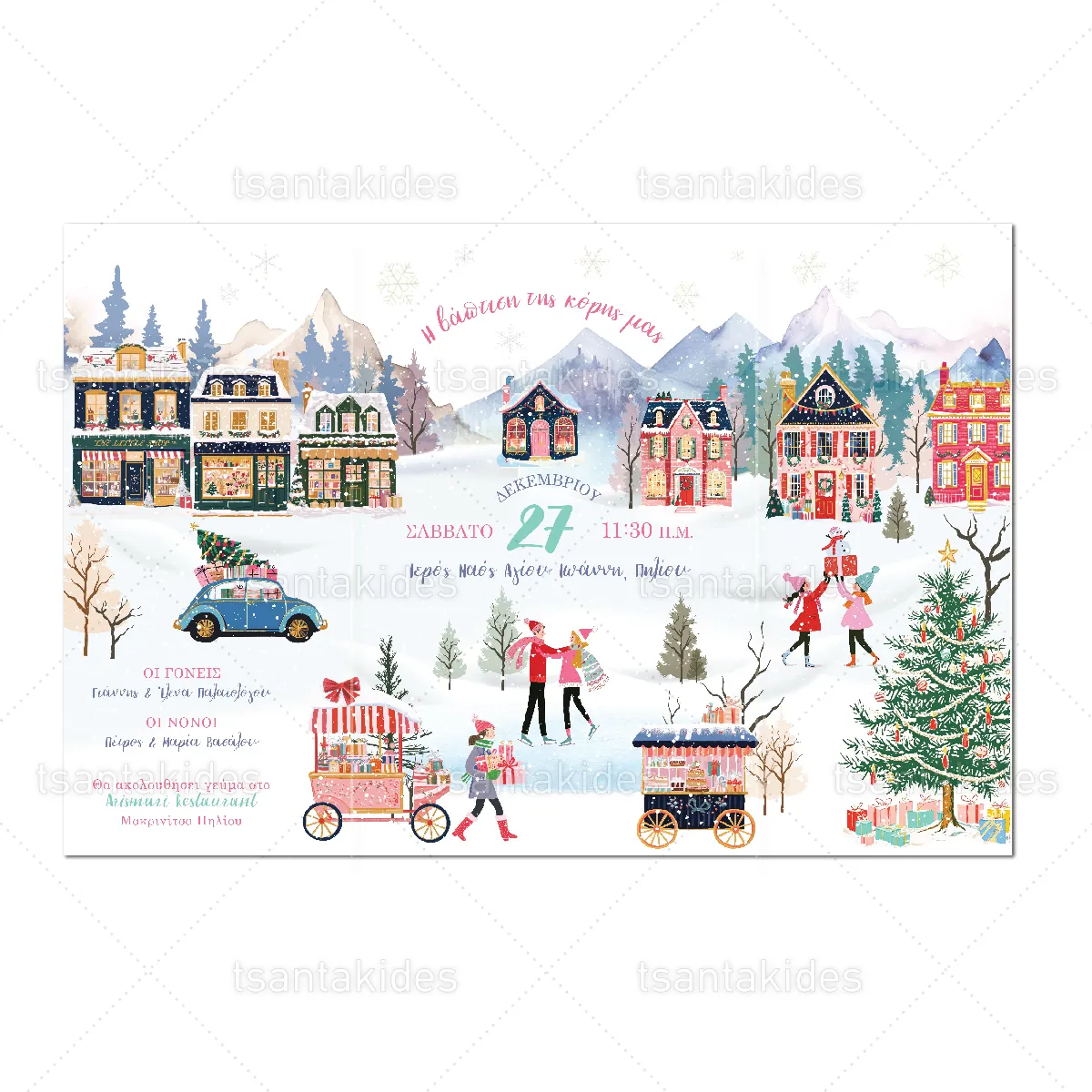 Προσκλητήριο βάπτισης εκτυπωμένο με θέμα Christmas Town.