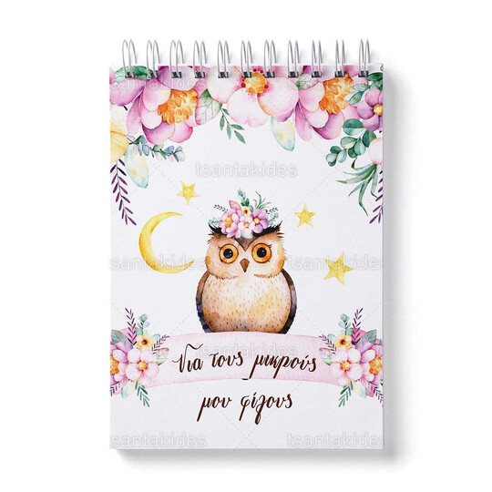 - Η επιλογή "με ξυλομπογιές" περιλαμβάνει το μπλοκάκι μαζί με 6 ξυλομπογιές σε κουτάκι με θεματικό αυτοκόλλητο, συσκευασμένα σε σελοφάν με κορδελίτσες στα χρώματα του θέματος.