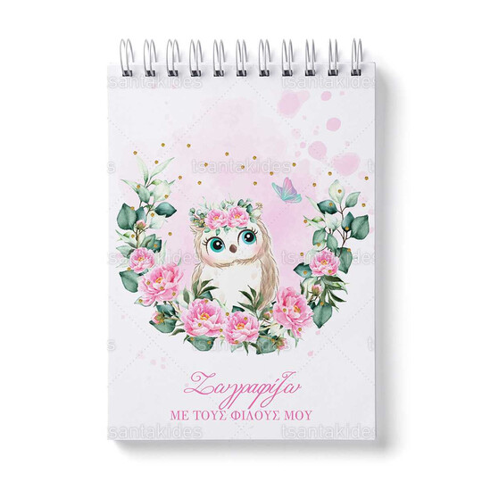 Παιδική μπομπονιέρα βάπτισης μπλοκάκι ζωγραφικής εκτυπωμένο με θέμα Μικρή Κουκουβάγια.