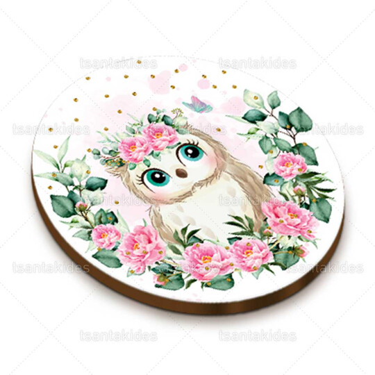 Ξύλινο διακοσμητικό μπομπονιέρας εκτυπωμένο με θέμα την μικρή κουκουβάγια