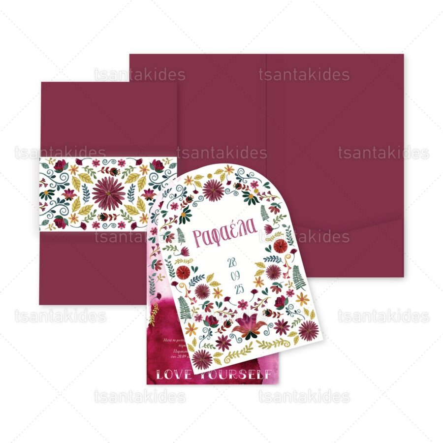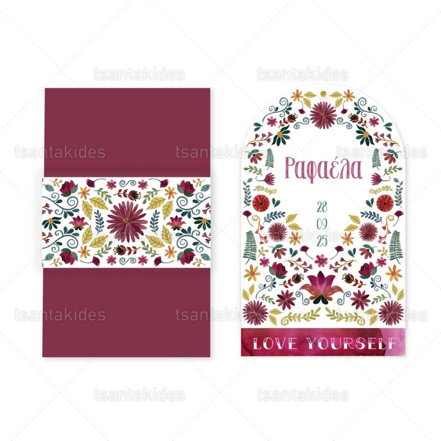 Προσκλητήριο βάπτισης για κορίτσι με θέμα Λουλούδια.
