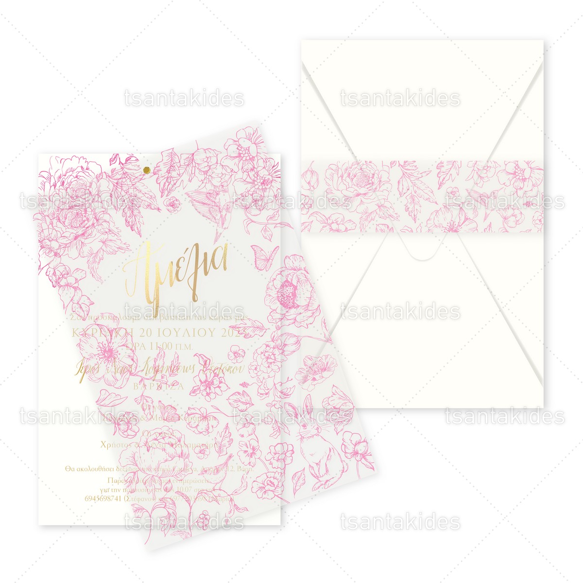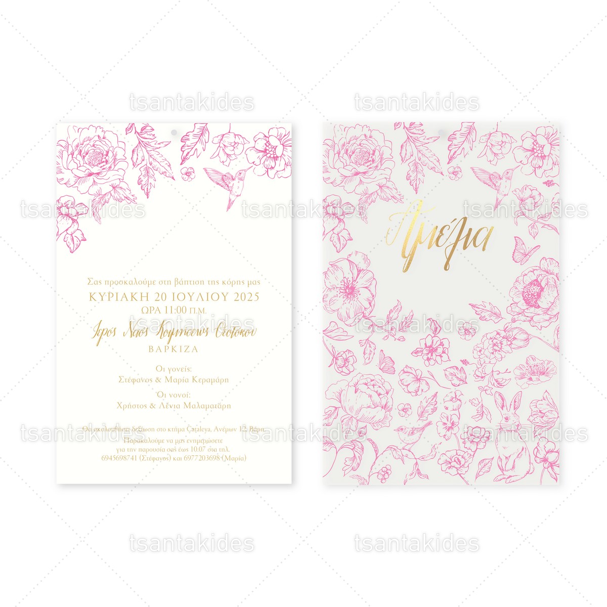 Προσκλητήριο βάπτισης για κορίτσι με θέμα Λουλούδια.