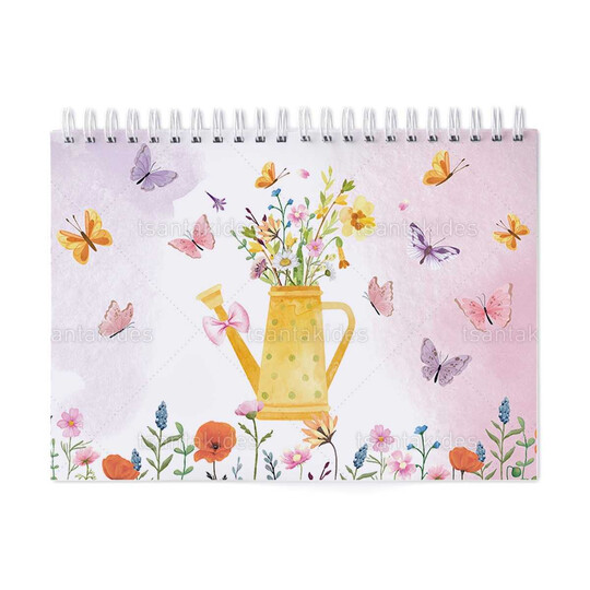 Παιδική μπομπονιέρα βάπτισης μπλοκ ζωγραφικής με διάσταση 21x29cm, εκτυπωμένο με θέμα Λουλούδια Σε Ποτιστήρι.