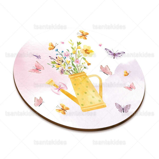 Ξύλινο διακοσμητικό μπομπονιέρας εκτυπωμένο με θέμα Watering Can and Wildflowers
