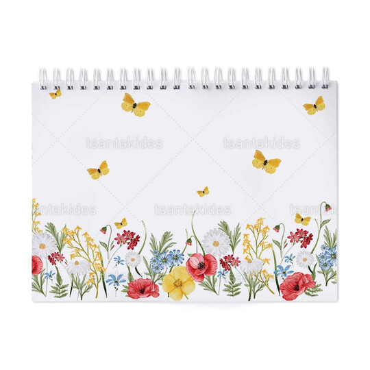 Παιδική μπομπονιέρα βάπτισης μπλοκ ζωγραφικής με διάσταση 21x29cm, εκτυπωμένο με θέμα Red Wildflowers.