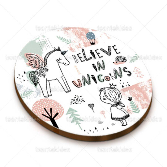Ξύλινο διακοσμητικό μπομπονιέρας εκτυπωμένο με θέμα το μονόκερο