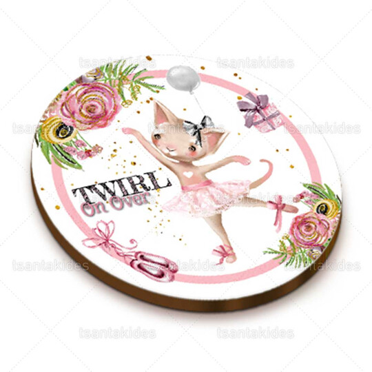 Ξύλινο διακοσμητικό μπομπονιέρας εκτυπωμένο με θέμα τη γατούλα μπαλαρίνα