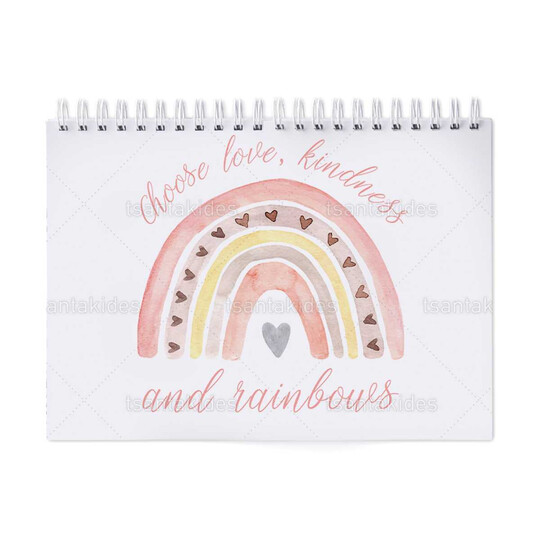 Παιδική μπομπονιέρα βάπτισης μπλοκ ζωγραφικής με διάσταση 21x29cm, εκτυπωμένο με θέμα Pastel Ουράνιο Τόξο.