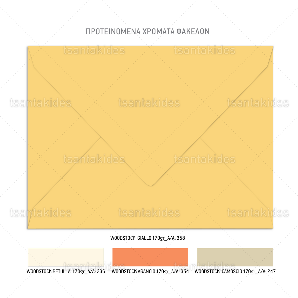 Η κάρτα του προσκλητηρίου είναι τυπωμένη σε λευκό ματ χαρτί 250 γρ. Το προσκλητήριο διαθέτει φάκελο διάστασης 19,5 x 14,5 εκ. σε χαρτί της επιλογής σας από τους αναγραφόμενους κωδικούς.