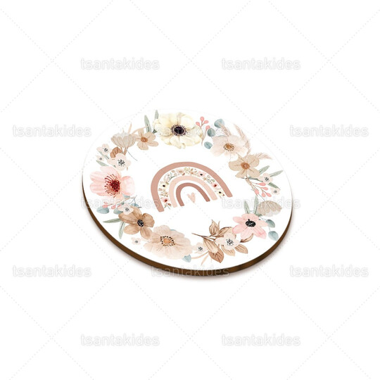Ξύλινο διακοσμητικό μπομπονιέρας εκτυπωμένο με θέμα Floral rainbow