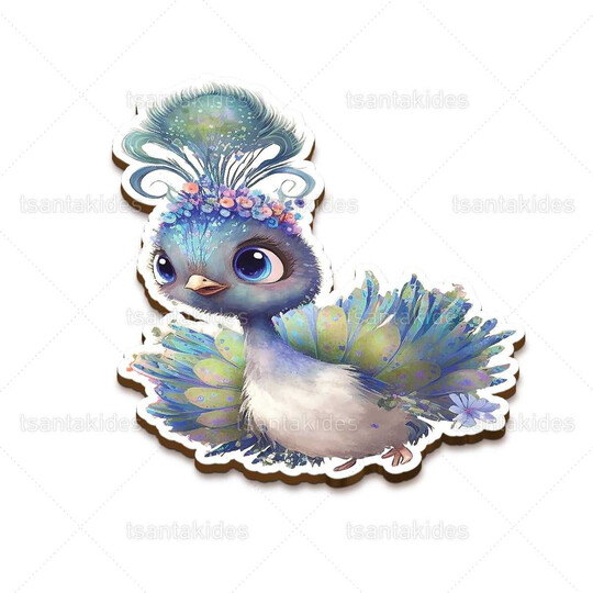 Ξύλινο διακοσμητικό μπομπονιέρας εκτυπωμένο με θέμα Cute Peacock