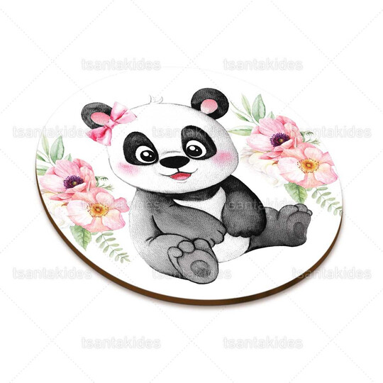 Ξύλινο διακοσμητικό μπομπονιέρας εκτυπωμένο με θέμα Baby Girl Panda