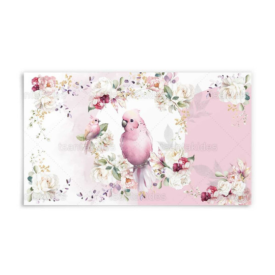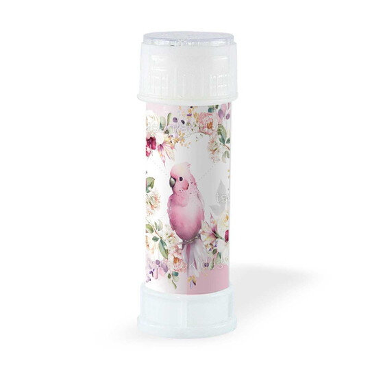 Ετικέτα για σαπουνόφουσκες εκτυπωμένη με θέμα Pink floral parrot