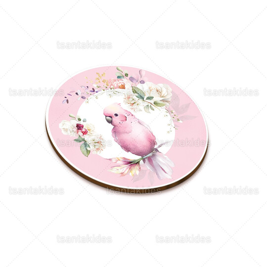 Ξύλινο διακοσμητικό μπομπονιέρας εκτυπωμένο με θέμα Pink floral parrot