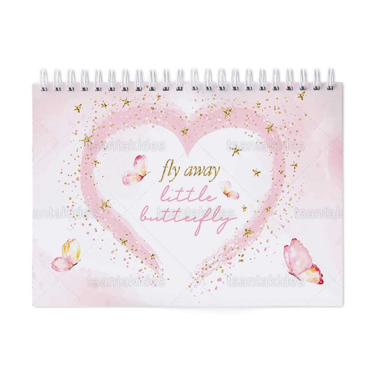 Παιδική μπομπονιέρα βάπτισης μπλοκ ζωγραφικής με διάσταση 21x29cm, εκτυπωμένο με θέμα Πεταλούδες Σε Καρδιά.