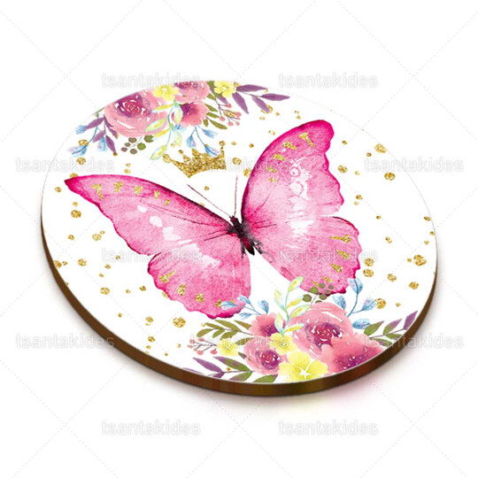 Ξύλινο διακοσμητικό μπομπονιέρας εκτυπωμένο με θέμα την πεταλούδα