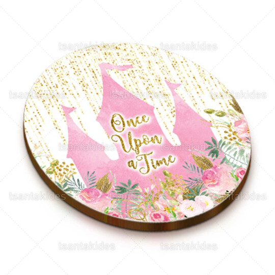 Ξύλινο διακοσμητικό μπομπονιέρας εκτυπωμένο με θέμα princess και κάστρο