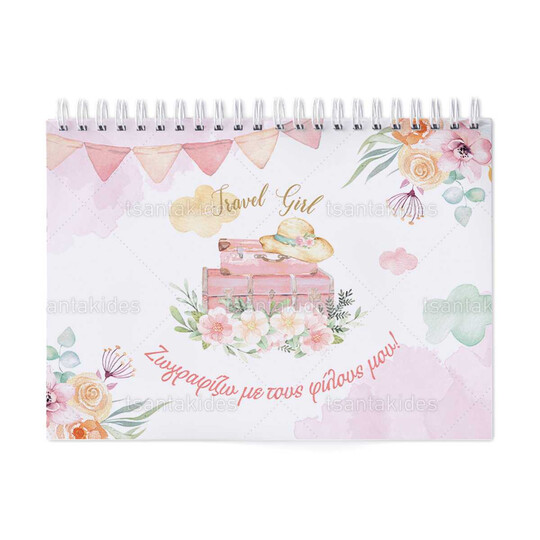 Παιδική μπομπονιέρα βάπτισης μπλοκ ζωγραφικής με διάσταση 21x29cm, εκτυπωμένο με θέμα Travel Girl.