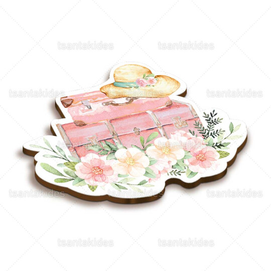 Ξύλινο διακοσμητικό μπομπονιέρας εκτυπωμένο με θέμα travel girl