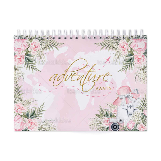 Παιδική μπομπονιέρα βάπτισης μπλοκ ζωγραφικής με διάσταση 21x29cm, εκτυπωμένο με θέμα Travel Girl.