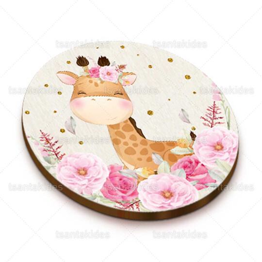 Ξύλινο διακοσμητικό μπομπονιέρας εκτυπωμένο με θέμα τη μικρή καμηλοπάρδαλη