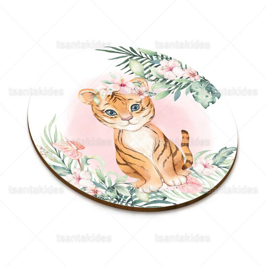 Ξύλινο διακοσμητικό μπομπονιέρας εκτυπωμένο με θέμα Baby Girl Tiger