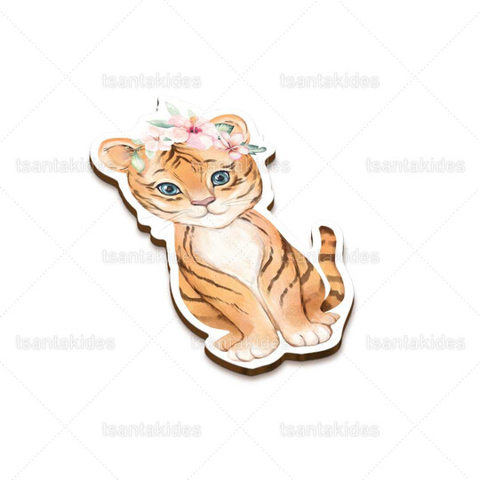 Ξύλινο διακοσμητικό μπομπονιέρας εκτυπωμένο με θέμα Baby Girl Tiger