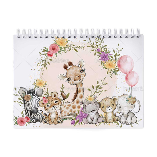 Παιδική μπομπονιέρα βάπτισης μπλοκ ζωγραφικής με διάσταση 21x29cm, εκτυπωμένο με θέμα Ζώα Της Ζούγκλας.